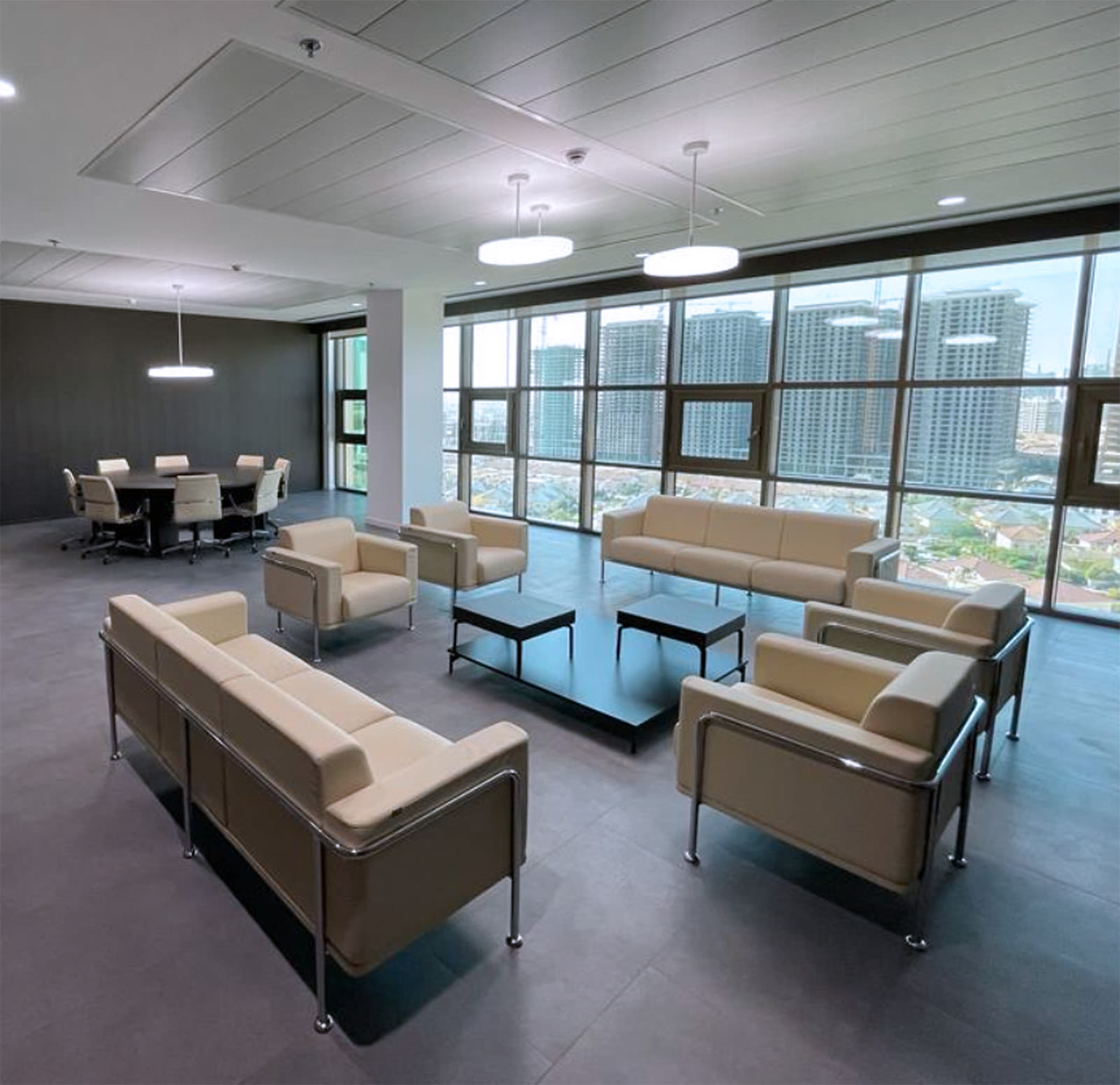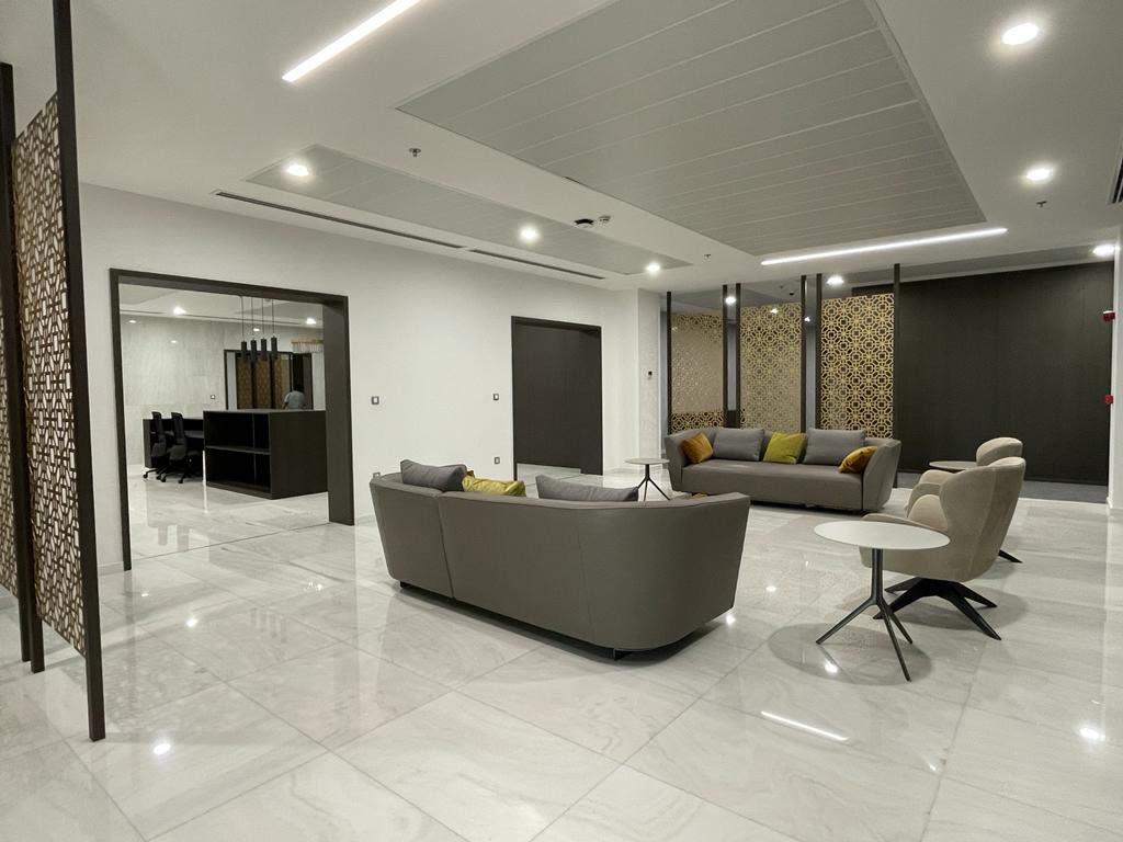 Progettazione, fornitura e posa per uffici direzionali in Iraq:• 24.000 mq• 1000 posti di lavoro• Postazioni operative/direzionali• Partition wall• Pavimentazioni• Controsoffitti• Illuminazioni• Acustica• Lounge area